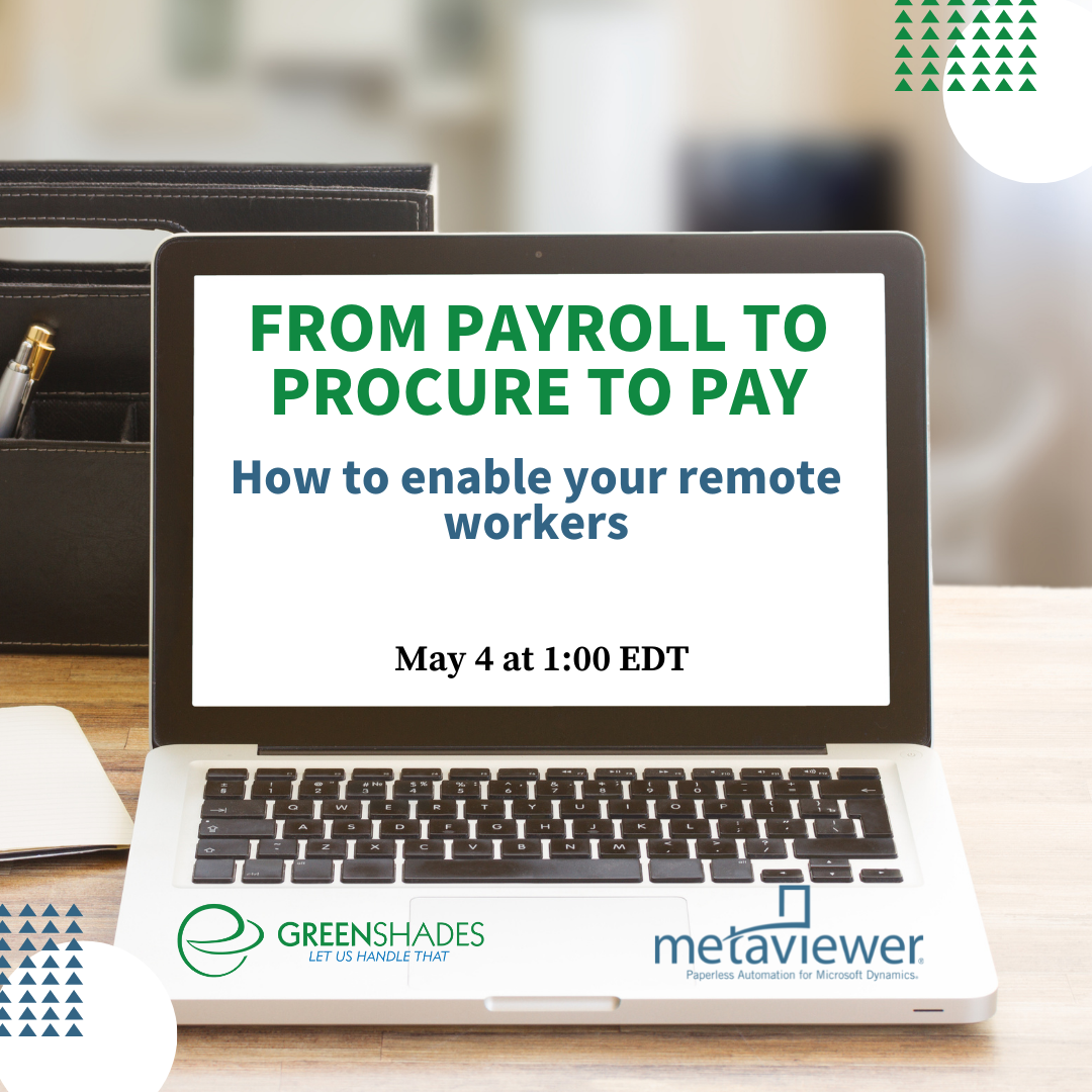 Join us on Wednesday, May 4 at 1:00 PM EDT as we partner with Greenshades Software to explore how automation is empowering today’s remote workforce in areas of Accounts Payable, HR, Tax Compliance and beyond!