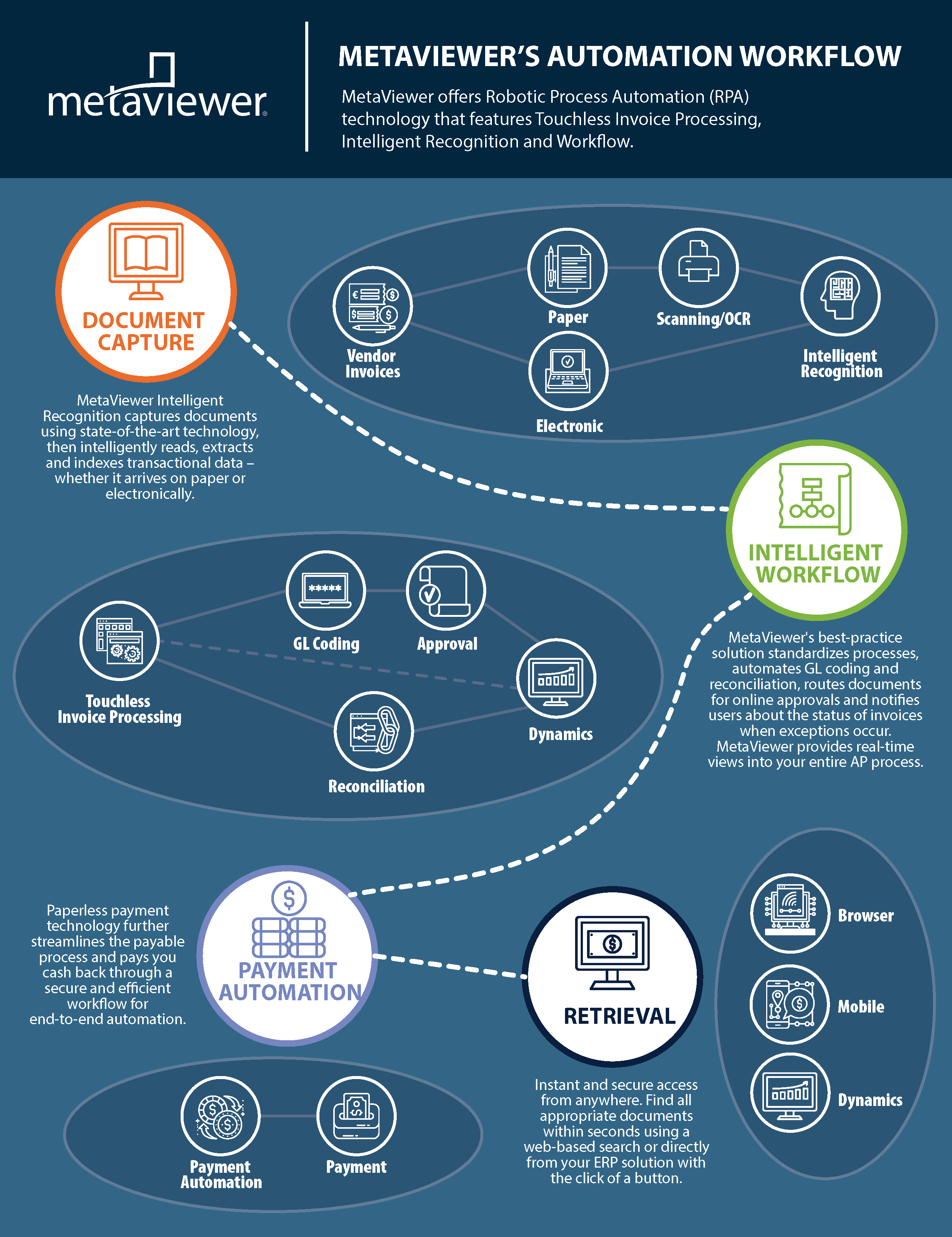 How do you know if MetaViewer’s AP Automation is right for your enterprise? (Hint: it is!) The first step is understanding how the AP automation workflow works. This infographic lays out the details, helping you understand where and how MetaViewer can assist your accounts payable department and workflow, every step of the way.